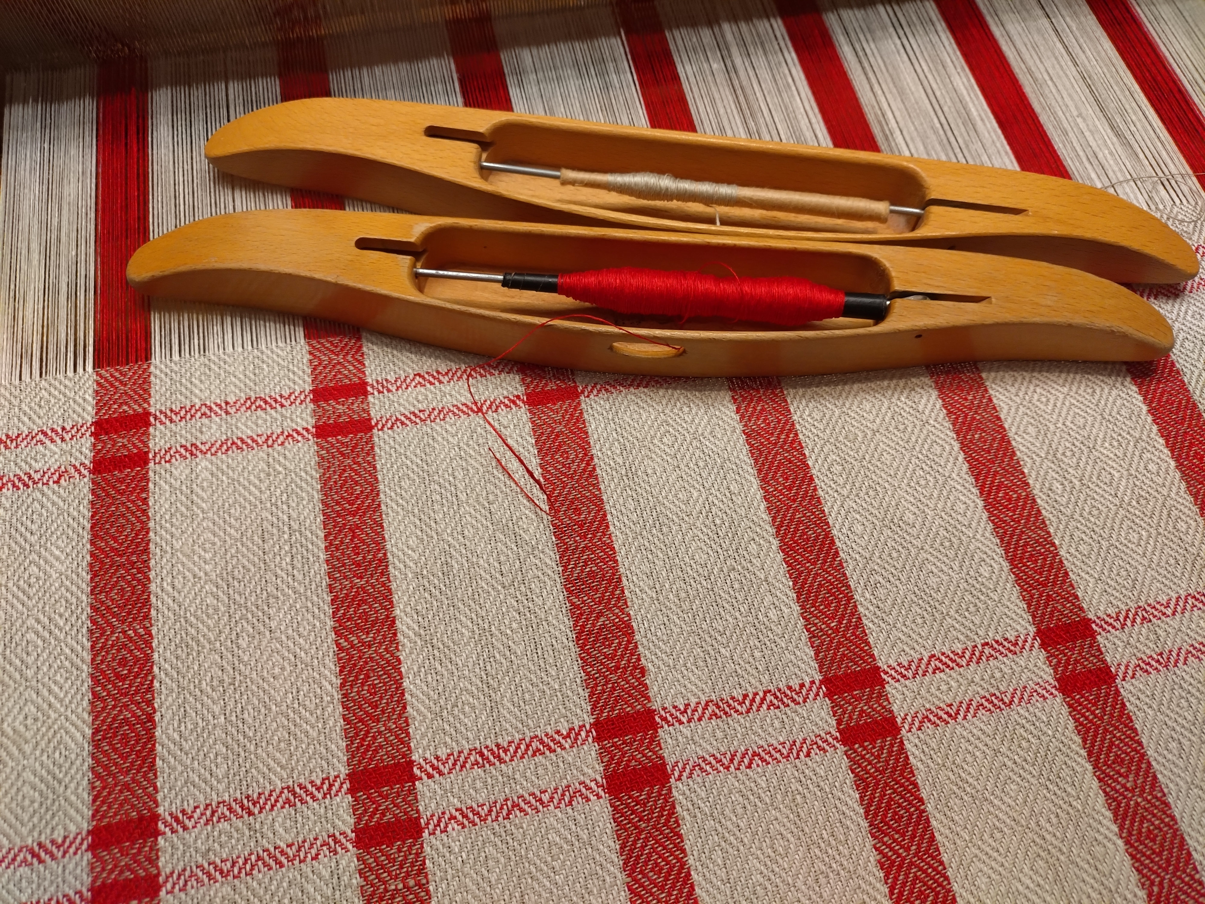 Hmmm.... jeg burde nok have opgivet projektet, da nogle tråde begyndte at knække allerede ved trending; men jeg har før vævet med 30/1 i trend og enkelt tråd i søl, så skam få den der giver sig.